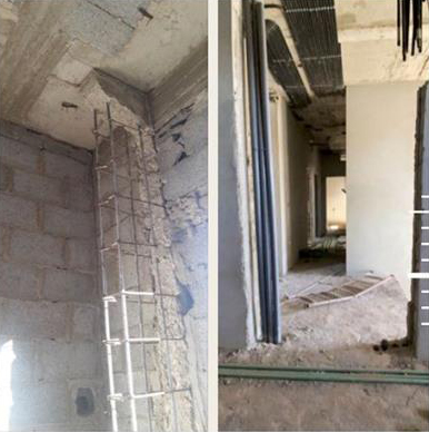 الفرش مع الجدران - الأسقف المستعارة مع فتحات التهوية – جسور السقف - تمديدات الكهرباء وغيرها.