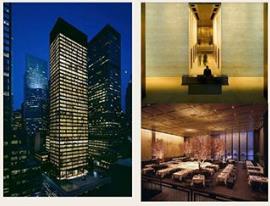 اعتمــد ريتشــارد علــى حلــول مهمــة للإنــارة فــي مبنــى ســيقرام، اعتمــد علــى مــكان مصــدر الإضــاءة باللــون الأســود ليخفيهــا عنــد التشــغيل، وأضــاف الإنــارة المتواصلــة علــى الجــدران الداخليــة فأصبح المبنى ظاهرا بشكل ملفت ورائع.
